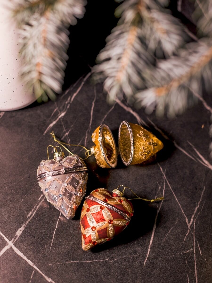 Купить Украшения на елку Премиум 3шт Сердца шкатулки с доставкой по всей России.
