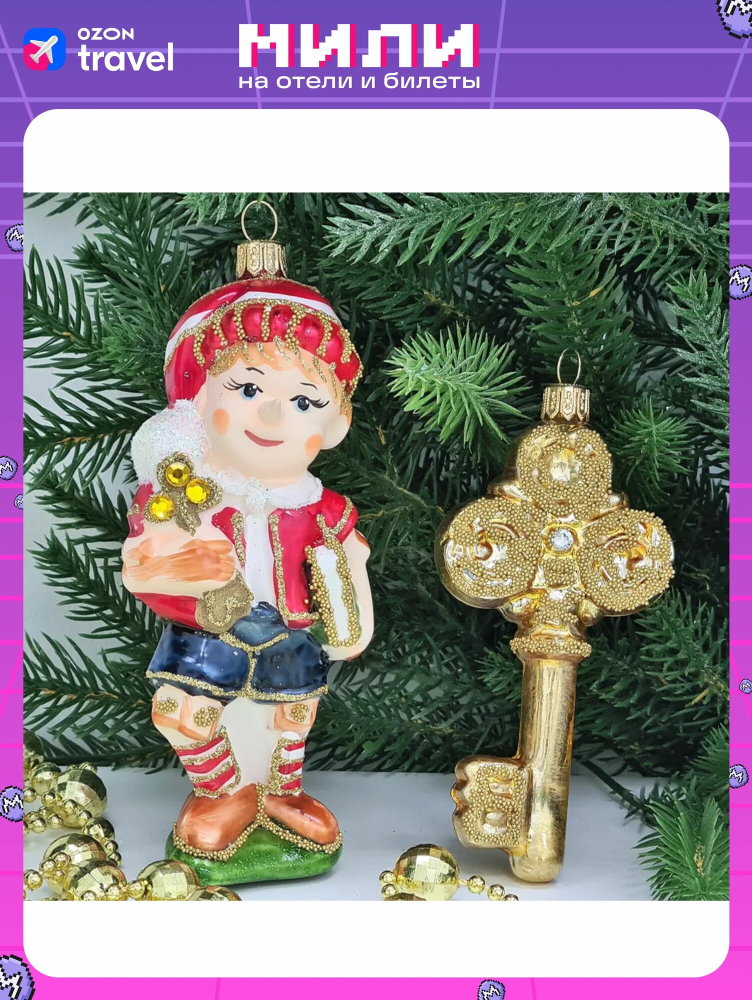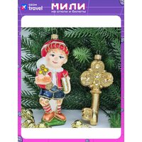 Irena-Co Набор елочных игрушек, стекло Деревянный мальчик и ключик (Буратино — 13,5х6х5см, Золотой ключик — 11х5,5х2см): сравнение цен, характеристики, фото, актуальное наличие и цены.