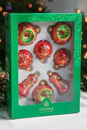Набор стеклянных ёлочных игрушек вензель, красный, 60-75 мм, 8 шт, Елочка С2199-кр: сравнение цен, характеристики, фото, актуальное наличие и цены.