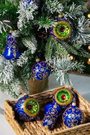 Купить Набор стеклянных ёлочных игрушек вензель, синий, 60-75 мм, 8 шт, Елочка С2199-син с доставкой по всей России.