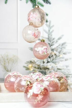 Купить Набор стеклянных ёлочных шаров ROMANCE DE FLEUR, прозрачно розовые оттенки, 10 см, 9 шт, Koopman International ABT620110-набор с доставкой по всей России.