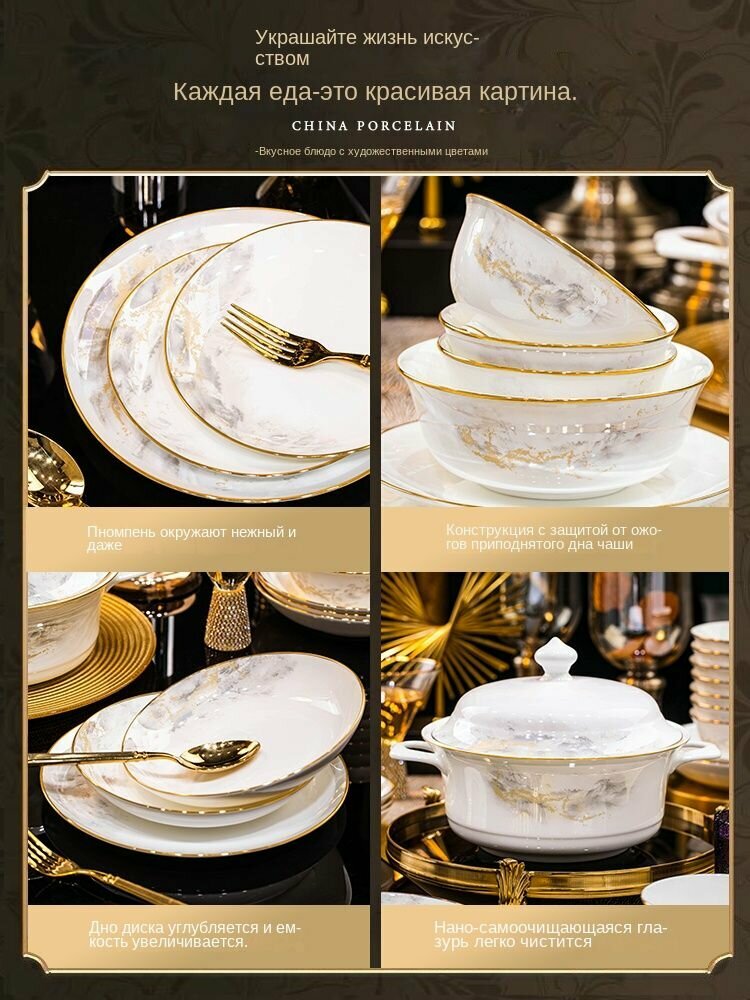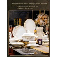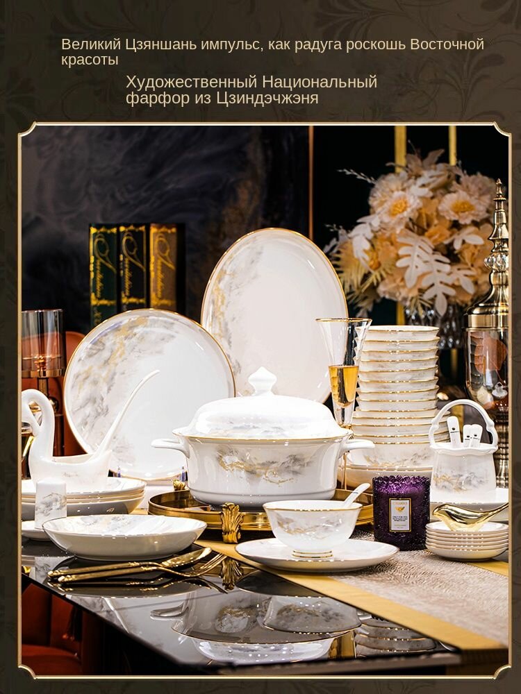 1. Бренд и происхождение • Бренд: Компания Yichen пользуется определенной репутацией в индустрии керамической посуды, и ее продукция отличается особым вниманием к дизайну и качеству. • Место происхождения: Цзиндэчжэнь, знаменитая фарфоровая столица Китая, славится глубокой культурой производства керамики и изысканной технологией изготовления фарфора, что обеспечивает надежную гарантию качества продукции. 2. Внешний дизайн •Стиль: Китайский стиль легкой роскоши, сочетающий традиционные китайские элементы с современными концепциями легкой роскоши, не только демонстрирует очарование восточной культуры, но и утрачивает чувство моды и качества. • Рисунок и цвет: • Обычно это изысканные китайские узоры, такие как цветы, пейзажи, традиционные благоприятные украшения и т. д, узоры тонко прорисованы, линии плавные, цвета гармонично сочетаются, а чувство искусства богато. • Некоторые сервизы также будут украшены рисунком Пномпеня, который увеличивает великолепие и многослойность посуды, делая ее более изысканной и элегантной на обеденном столе. 3. Материал и мастерство изготовления • Материал: Изготовлен из высококачественных керамических материалов, фарфор нежный, а текстура твердая. • Ремесло: • Процесс глазирования: Цвет посуды остается ярким, рисунок не выцветает и не осыпается, а внешний вид сохраняется при длительном использовании. • Изысканная технология производства, от изготовления заготовок, глазурования до обжига, каждый процесс строго контролируется для обеспечения высокого качества продукции. • После высокотемпературного обжига керамика обладает высокой плотностью, не впитывает воду, не способствует размножению бактерий, а также более безопасна и гигиенична в использовании. 4. Установить конфигурацию • Содержит разнообразные блюда и столовые приборы, в том числе миски для риса, суповые тарелки, обеденные тарелки, тарелки для рыбы, тарелки для костей и т. д, которые могут удовлетворить различные потребности семей в ежедневном питании. • Некоторые наборы также будут укомплектованы кастрюлями для супа, ложками, палочками для еды и другими столовыми приборами, чтобы сформировать полный набор посуды. 5. Применимые сценарии • Ежедневное использование в семье: высококачественная посуда может придать семейным трапезам особую атмосферу и ритуальность, делая ежедневный прием пищи более приятным. • Подарки на новоселье: изысканная упаковка и высококачественная посуда делают его идеальным подарком на новоселье в новом доме, который является одновременно практичным и достойным. • Праздничные мероприятия: В особых случаях, таких как фестивали или торжественные мероприятия, использование высококачественной керамической посуды в китайском стиле может создать особую праздничную атмосферу. 6. Функциональные особенности • Подходит для микроволновых печей: Большинство наборов керамической посуды Yichen можно разогревать непосредственно в микроволновой печи, что удобно и быстро для удовлетворения потребностей современных семей. • Легко моется: керамическая поверхность гладкая, на ней не легко остаются пятна, и ее очень удобно чистить. Просто аккуратно протрите водой с моющим средством.