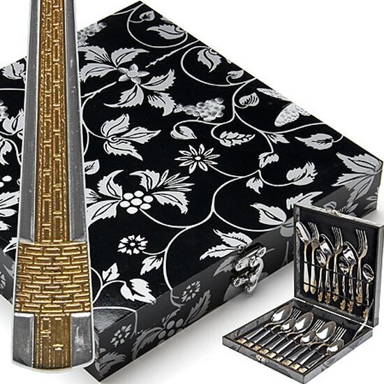 Набор столовых приборов MAYER&BOCH на 6 персон включает в себя 18 предметов: 6 столовых ложек, 6 столовых вилок, 6 чайных ложек. Столовые приборы изготавливаются из высококачественной нержавеющей стали, все изделия проходят тщательный технологический контроль. Приборы из нержавеющей стали такого состава отличаются высокими антикоррозионными свойствами, значительной устойчивостью к воздействию кислот и щелочей. Такая сталь не изменяет вкус и цвет пищи, не выделяет вредных веществ. Элегантные золотые узоры на столовых приборах выполнены по технологии плазменного напыления, обеспечивающего высокую износостойкость покрытия. Стильный, классический дизайн и отличное качество столовых приборов MAYER&BOCH делают набор желанной покупкой для любого, даже самого пристрастного, клиента. Набор столовых приборов MAYER&BOCH, безусловно, займет достойное место на любой кухне. Набор подходит как для ежедневного использования, так и для торжественных случаев. Набор упакован в красивый подарочный деревянный кейс. Подходит для мытья в посудомоечной машине.