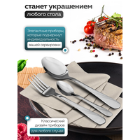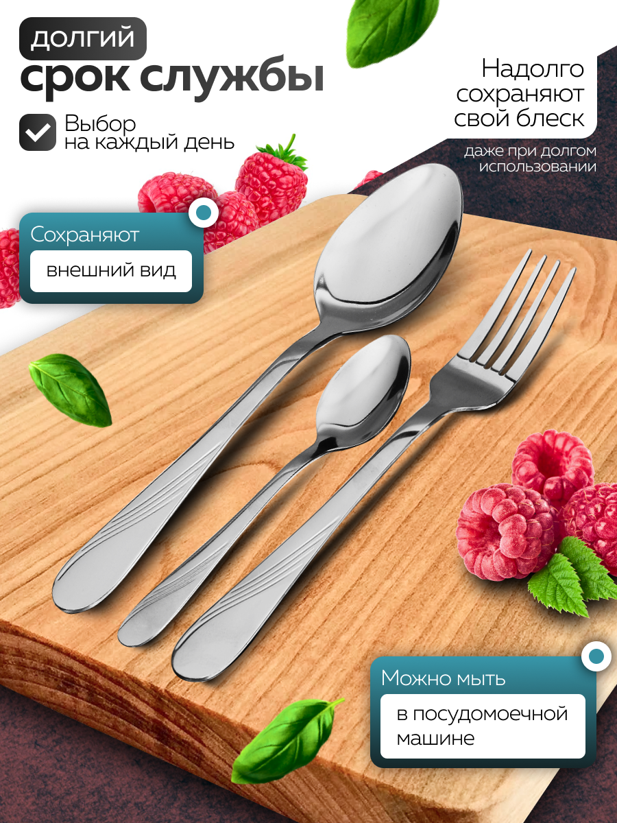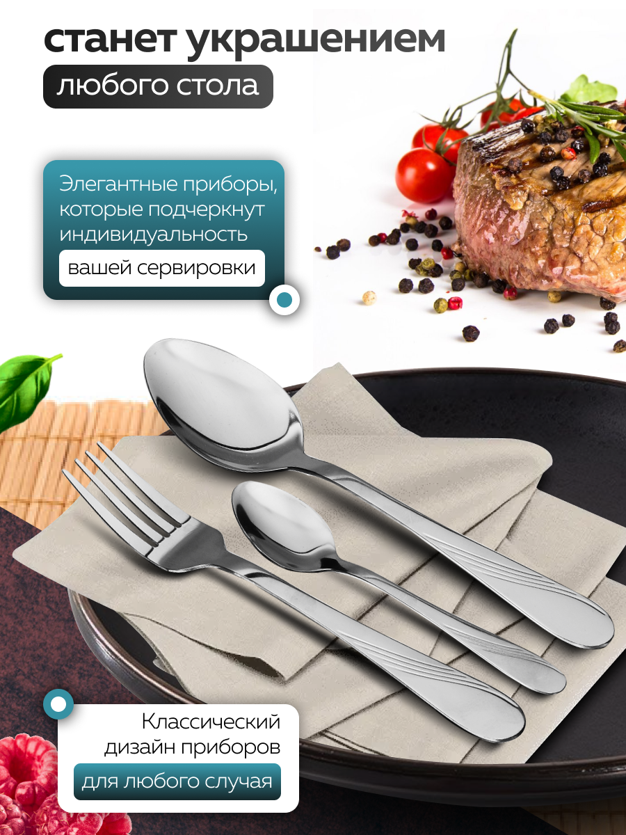 Набор столовых приборов на 6 персон от MAYER&BOCH — это идеальный выбор для тех, кто ценит качество и элегантность. Он состоит из 18 предметов: столовые ложки - 6 шт, столовые вики - 6 шт, чайные ложки - 6 шт. Кроме того, он отличается не только высоким качеством нержавеющей стали и изысканным дизайном, но и удобством в использовании. Ручки обеспечивают комфорт при их длительном использовании, а их вес идеально сбалансирован для удобства при сервировке стола. Чаепитие или обед с друзьями станет незабываемым благодаря элегантным столовым приборам, которые добавят шарма и изыска любому столу. Также отличается прочностью и долговечностью. Вы можете быть уверены, что даже при ежедневном использовании они сохранят свой первозданный вид и качество. Благодаря высокой износостойкости покрытия, они будут выглядеть как новые долгие годы. Таким образом, покупка этого набора - это инвестиция в качественные и долговечные кухонные принадлежности, которые станут идеальным дополнением к вашему дому. Не стоит забывать и о практичности данного набора . Возможность мыть их в посудомоечной машине значительно упростит процесс уборки после приема пищи, а также сэкономит ваше время. Кроме того, красивый подарочную коробку, в котором упакован предметы, сделает его отличным подарком для ваших близких и друзей, добавляя праздничный наряд к повседневной жизни.
