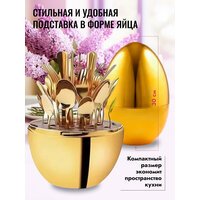 Хотите удивить подарком? Что подарить руководителю, коллеге, учителю, маме, на юбилей? Ответ на все эти вопросы прост: Набор столовых приборов Яйцо. Уникальный подарочный набор столовых приборов в подставке яйцо выполнен из высококачественной нержавеющей стали. В состав набора столовых приборов ножи, вилки, ложки столовые, ложки чайные на 6 персон + удобная эргономичная подставка для столовых приборов. Подарочный набор кухонных принадлежностей зеркально отполирован, не окисляется, сохраняет свой блеск очень долго. Набор столовых принадлежностей упакован в плотную подарочную коробку идеален для подарка маме, бабушке, девушке, подруге, коллеге, знакомым, на новоселье, новый год, день рождения. Ножи, ложки и вилки будут идеальным элементом сервировки стола к особому случаю и для повседневного использования. Столовые приборы легки в уходе их также можно мы в посудомоечной машине. А подставка для столовых приборов решит проблему с хранением ложек, вилок и ножей на Вашей кухне. Набор столовых предметов на 6 персон идеален в качестве подарка на день учителя.