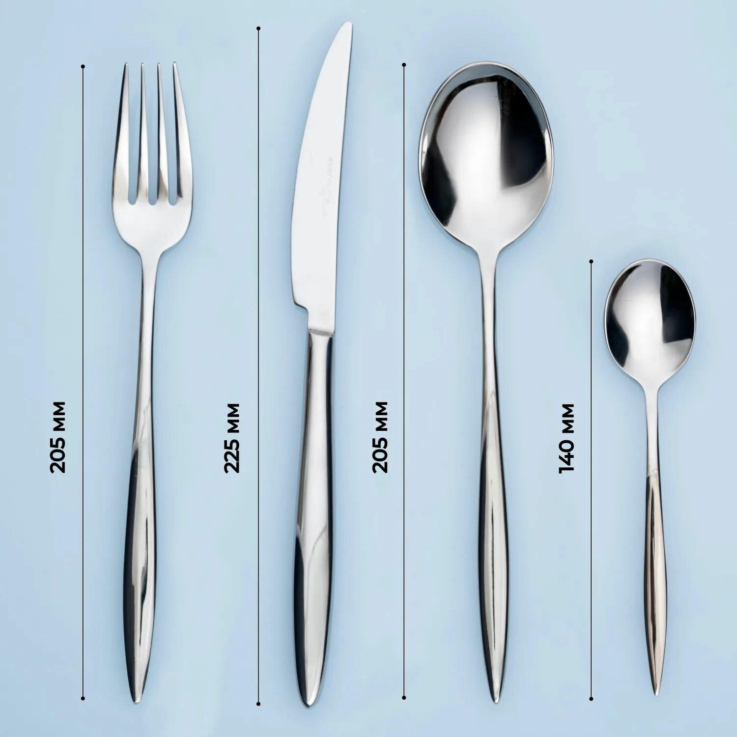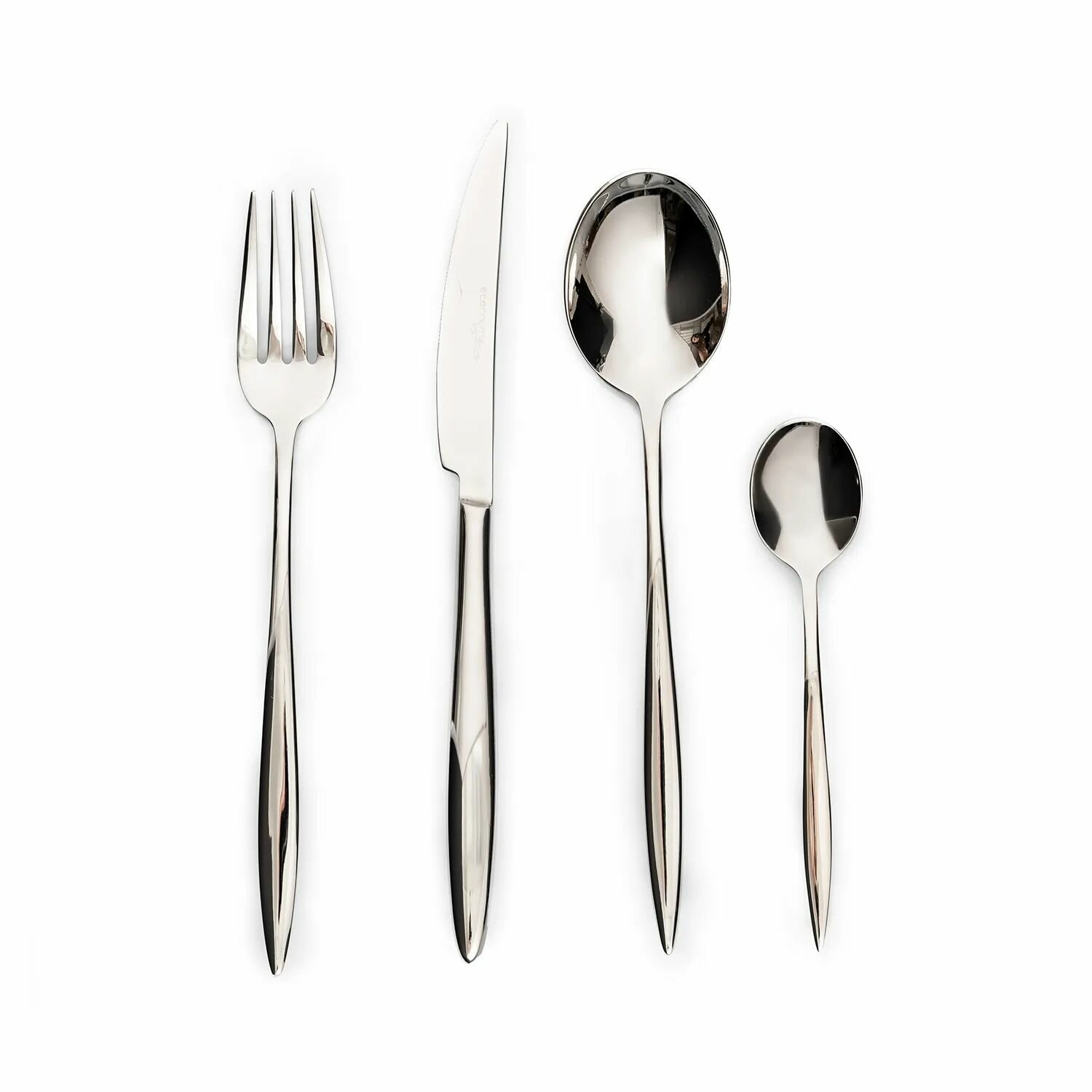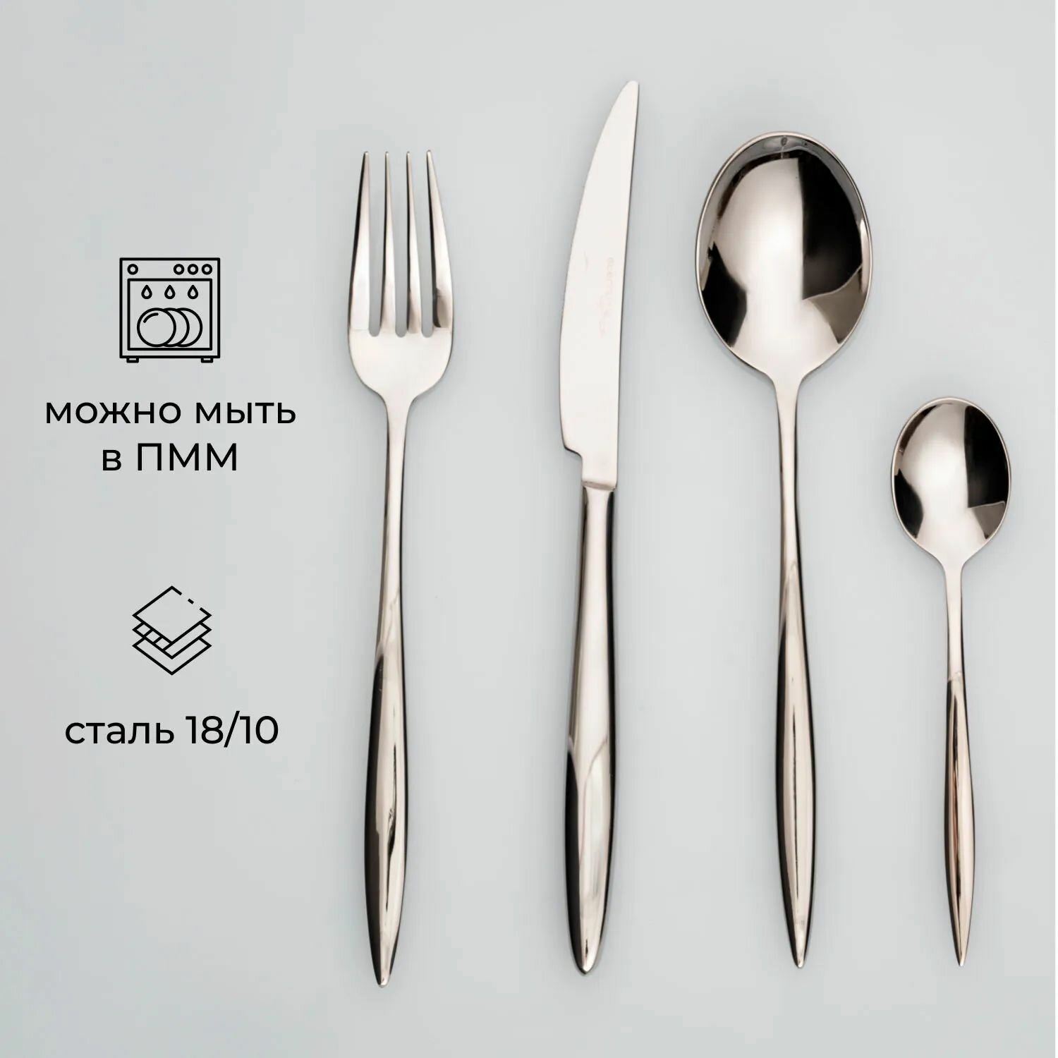 Набор столовых приборов Адажио. Изготовленные из нержавеющей стали 18/10, они обеспечивают долговечность и сохранение блеска на протяжении многих лет.