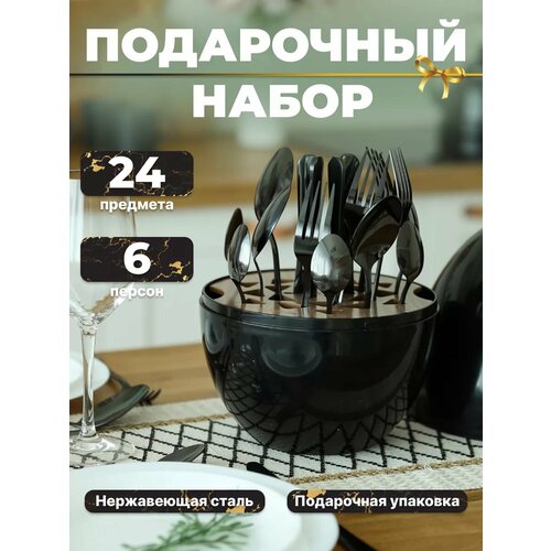 Набор столовых приборов черного цвета для 6 человек, подарочный набор из 24 предметов в черном футляре-яйце: сравнение цен, характеристики, фото, актуальное наличие и цены.