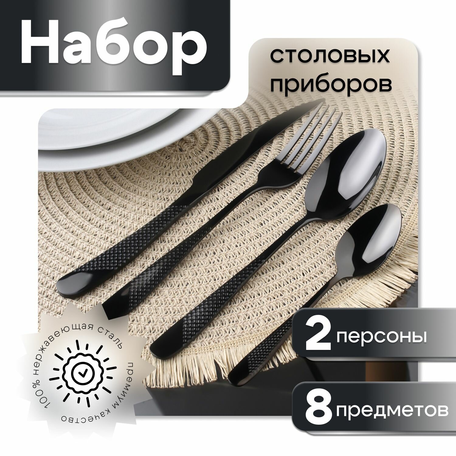 Купить Набор столовых приборов черный — на 2 персоны, 8 предметов с доставкой по всей России. Набор столовых приборов черный — на 2 персоны, 8 предметов: сравнение цен, характеристики, фото, актуальное наличие и цены.