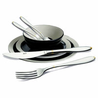 Набор столовых приборов "Julia Gold" бренда Face выполнен из высококачественной нержавеющей стали. Не гнутся, прочные, имеют длительный срок службы. В составе: столовые ложки - 6 шт, столовые вилки - 6 шт, столовые ножи - 6 шт, чайные ложки - 6 шт.