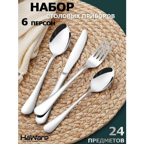 1. Набор столовых приборов на 6 персон, 24 предмета, включает 6 чайныхложек, 6 ложек столовых, 6 вилок столовых, 6 ножей столовых, идеально подходит для ежедневного домашнего использования, свадьбы, ресторана, отеля, вечеринки, и т. д.