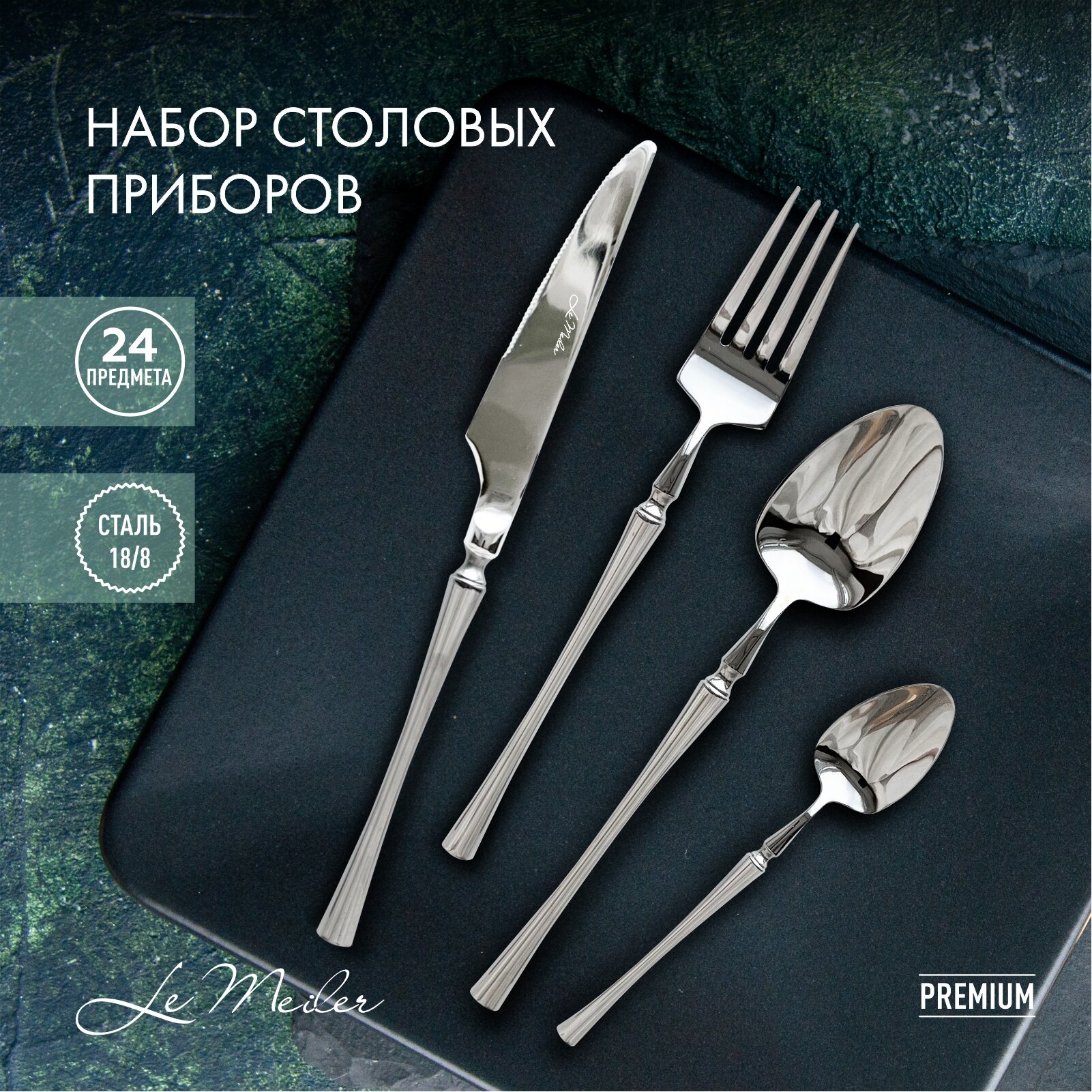 Купить Набор столовых приборов на 6 персон, 24 предмета Le Meiler FS-280 нержавеющая сталь, подарочный набор, глянцевое серебро с доставкой по всей России.
