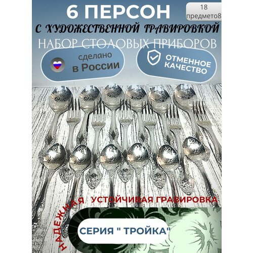 Набор столовых приборов, ложка, вилка, чайная ложка, на 6 персон с гравировкой. Павловский завод. Серия тройка: сравнение цен, характеристики, фото, актуальное наличие и цены.