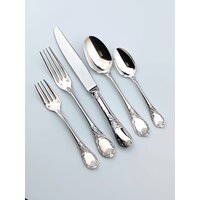 Материал: Основным материалом является нержавеющая сталь. Набор выполнен с посеребрением. Посеребрение Christofle – 80 микрон, которое обеспечивает долговечность и защиту от коррозии на многие годы. Это покрытие придаёт изделиям блеск и делает их не только красивыми, но и практичными для повседневного использования.