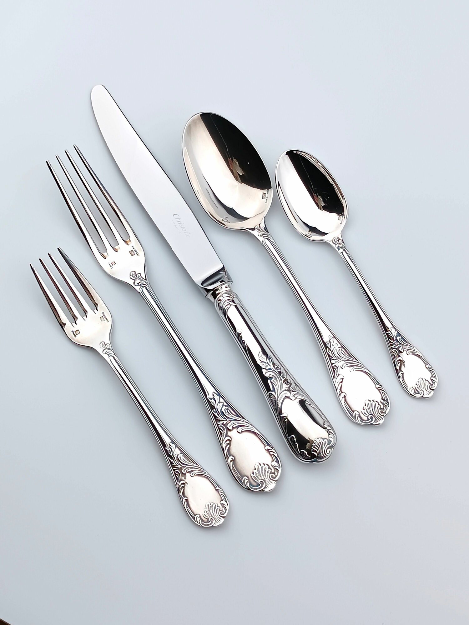 Столовый набор Marly от Christofle — это идеальный выбор для тех, кто ценит классическое качество и элегантность, подходящие для любого стола и любого случая.