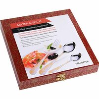 Набор столовых приборов MAYER&BOCH на 6 персон включает в себя 18 предметов: 6 столовых ложек, 6 столовых вилок, 6 чайных ложек. Столовые приборы изготавливаются из высококачественной нержавеющей стали, все изделия проходят тщательный технологический контроль. Приборы из нержавеющей стали такого состава отличаются высокими антикоррозионными свойствами, значительной устойчивостью к воздействию кислот и щелочей. Такая сталь не изменяет вкус и цвет пищи, не выделяет вредных веществ. Элегантные золотые узоры на столовых приборах выполнены по технологии плазменного напыления, обеспечивающего высокую износостойкость покрытия. Стильный, классический дизайн и отличное качество столовых приборов MAYER&BOCH делают набор желанной покупкой для любого, даже самого пристрастного, клиента. Набор столовых приборов MAYER&BOCH, безусловно, займет достойное место на любой кухне. Набор подходит как для ежедневного использования, так и для торжественных случаев. Набор упакован в красивый подарочный деревянный кейс. Подходит для мытья в посудомоечной машине. Столовый набор 18 пр. Столовые вилки: 6 шт. Столовые ложки: 6 шт. Чайные ложки: 6 шт. Материал: нержавеющая сталь 410. Цает: серебристый, золотой. Рисунок: золотой узор. Размер упаковки: 25,5 х 25,7 х 4,3 см. Упаковка: подарочный кейс. Материал кейса: дерево. Вес: 1,24 кг. Страна производитель: Китай.