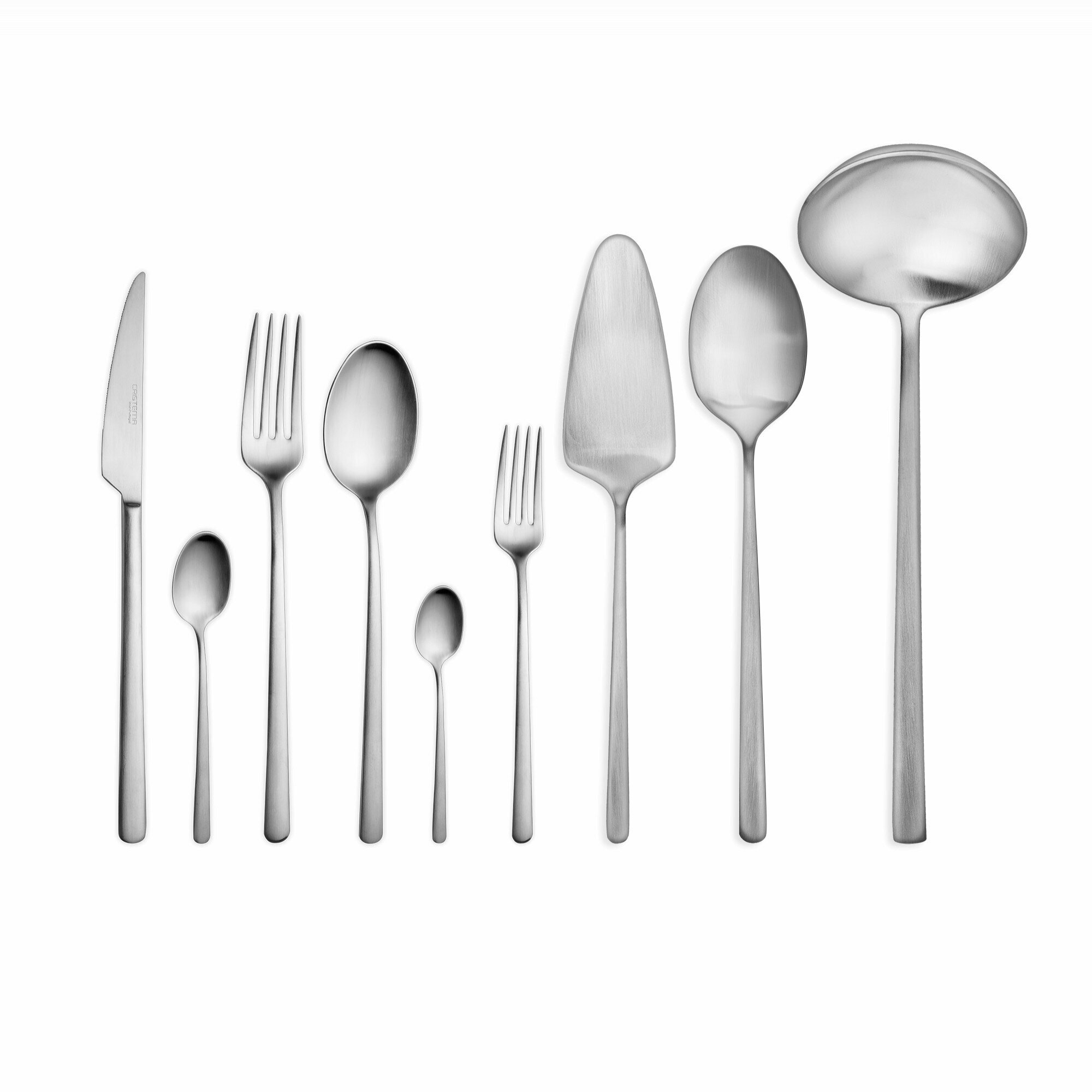 столовые ножи 24,2 см - 12 штук столовые вилки 21,5 см - 12 штук столовые ложки 21,5 см - 12 штук десертные вилки 18 см - 12 штук чайные ложки 13,8 см - 12 штук кофейные ложки 11,1 см - 12 штук сервировочная ложка 25,7 см - 1 штука половник 28,7 см - 1 штука лопатка 25,6 см - 1 штука