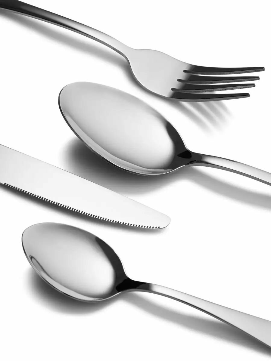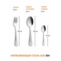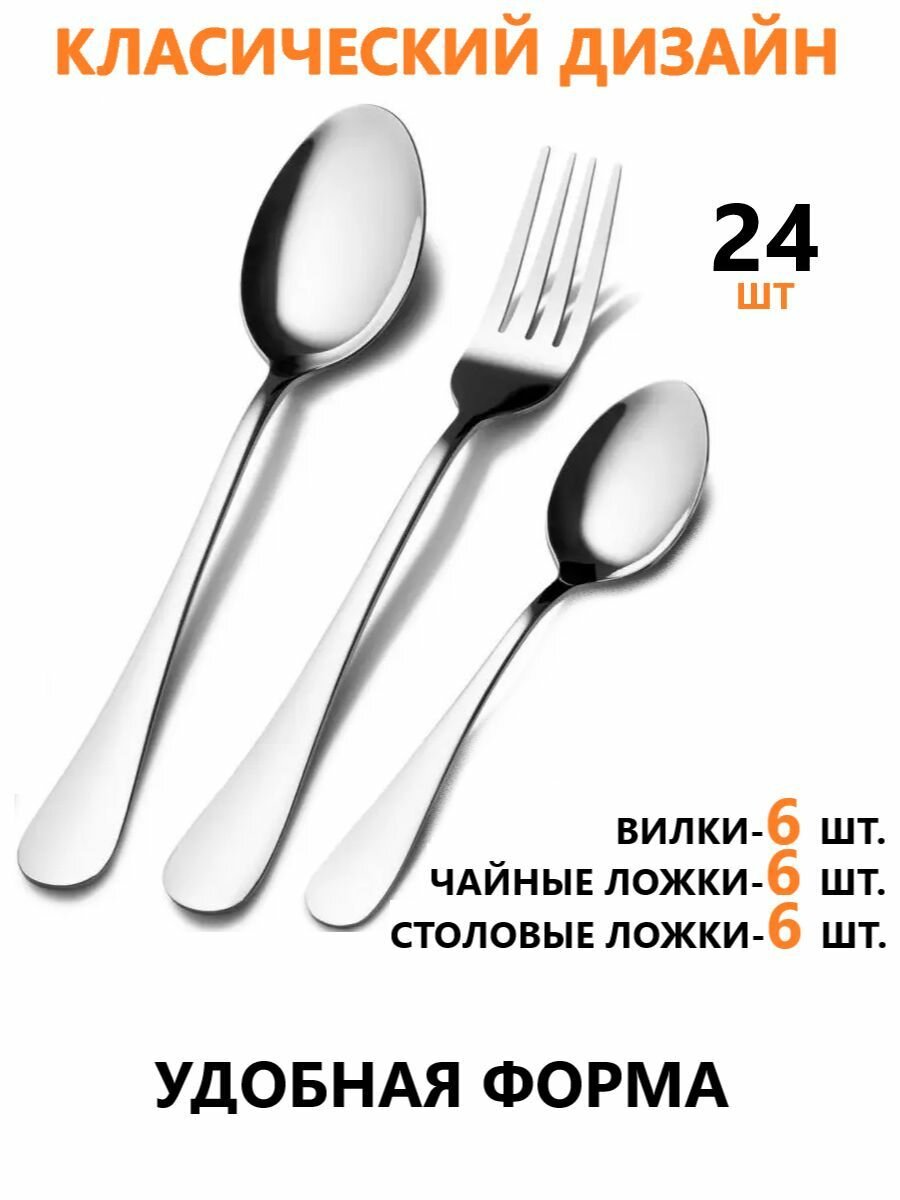 Набор столовых приборов 18 предметов на 6 персон. Столовые приборы набор: ложки столовые - 6шт, вилки столовые - 6шт, ложки чайные - 6шт. Набор столовых предметов выполнен из высококачественной нержавеющей стали, очень прочные, не гнутся, имеют длительный срок службы, отлично сохраняют эксплуатационные свойства. Пищевая нержавеющая сталь не имеет запаха и сохраняет вкус и аромат продуктов натуральными. Приборы для кухни с выпуклостью в симметричном формате и тщательно закругленными краями, обеспечивающими больший комфорт в использовании. Утонченные, привлекательные изогнутые линии приборов объединяют в себе отличную эргономику и изысканный внешний вид. Дизайн воссоздан по всем канонам стиля, не подвластному времени и моде. Глянцевая отделка. Набор посуды столовой подходит на каждый день и для праздничной сервировки стола. Их можно мыть ежедневно в посудомоечной машине. Приборы столовые вилки ложки в комплекте. Набор столовых приборов. Коллекция ресторанных ложек и вилок, которые станут прекрасным дополнением к Вашей кухне и создадут особую атмосферу за столом.