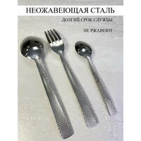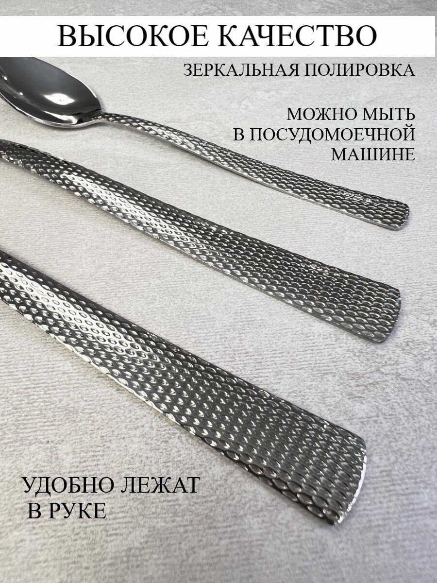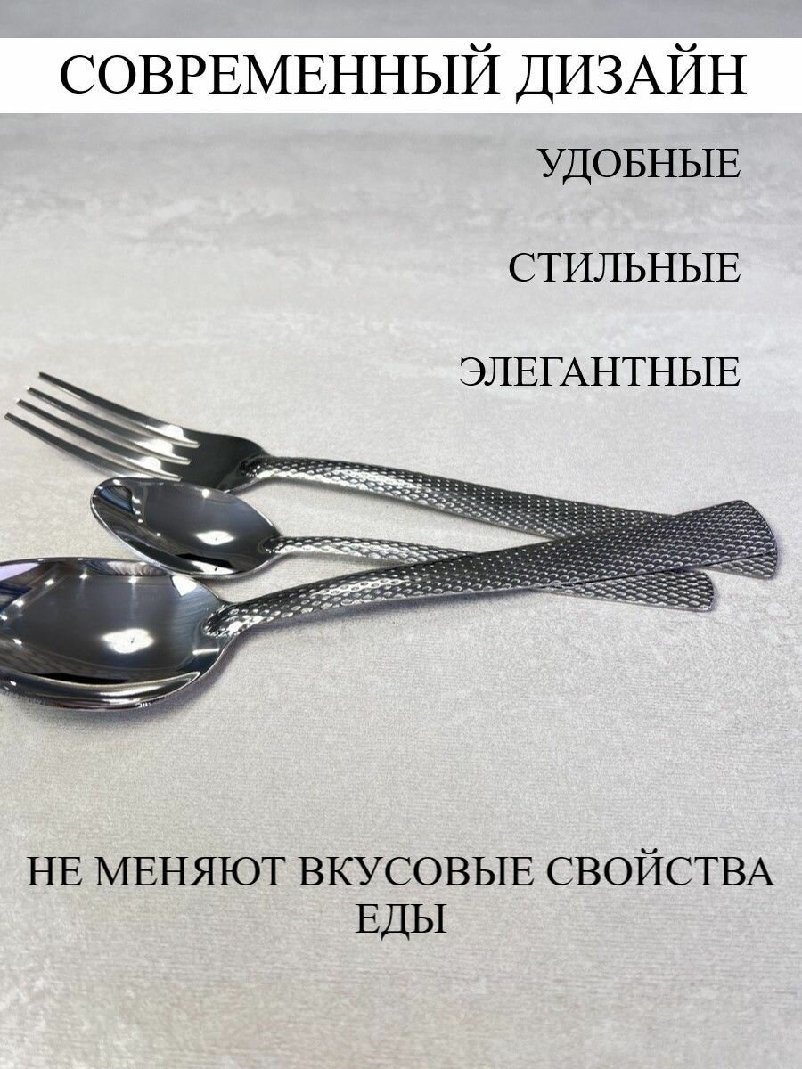Набор столовых приборов 18 предметов на 6 персон. Столовые приборы набор: ложки столовые - 6шт, вилки столовые - 6шт, ложки чайные - 6шт. Набор столовых предметов выполнен из высококачественной нержавеющей стали, очень прочные, не гнутся, имеют длительный срок службы, отлично сохраняют эксплуатационные свойства. Пищевая нержавеющая сталь не имеет запаха и сохраняет вкус и аромат продуктов натуральными. Приборы для кухни с выпуклостью в симметричном формате и тщательно закругленными краями, обеспечивающими больший комфорт в использовании. Утонченные, привлекательные изогнутые линии приборов объединяют в себе отличную эргономику и изысканный внешний вид. Дизайн воссоздан по всем канонам стиля, не подвластному времени и моде. Глянцевая отделка. Набор посуды столовой подходит на каждый день и для праздничной сервировки стола. Их можно мыть ежедневно в посудомоечной машине. Приборы столовые вилки ложки в комплекте. Набор столовых приборов.