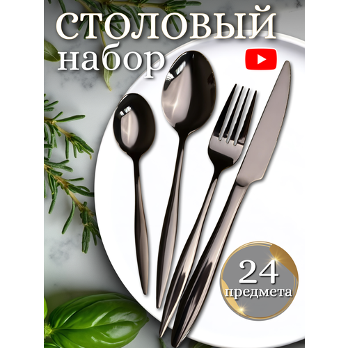 Набор столовых приборов черный "Капля" - это изысканный выбор для тех, кто ценит качество и стиль. В комплект входит 24 предмета, что позволяет сервировать стол на 6 персон.