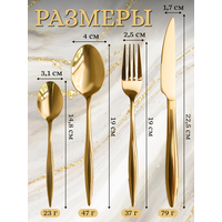Набор столовых приборов золото "Капля" - это изысканный выбор для тех, кто ценит качество и стиль. В комплект входит 24 предмета, что позволяет сервировать стол на 6 персон.