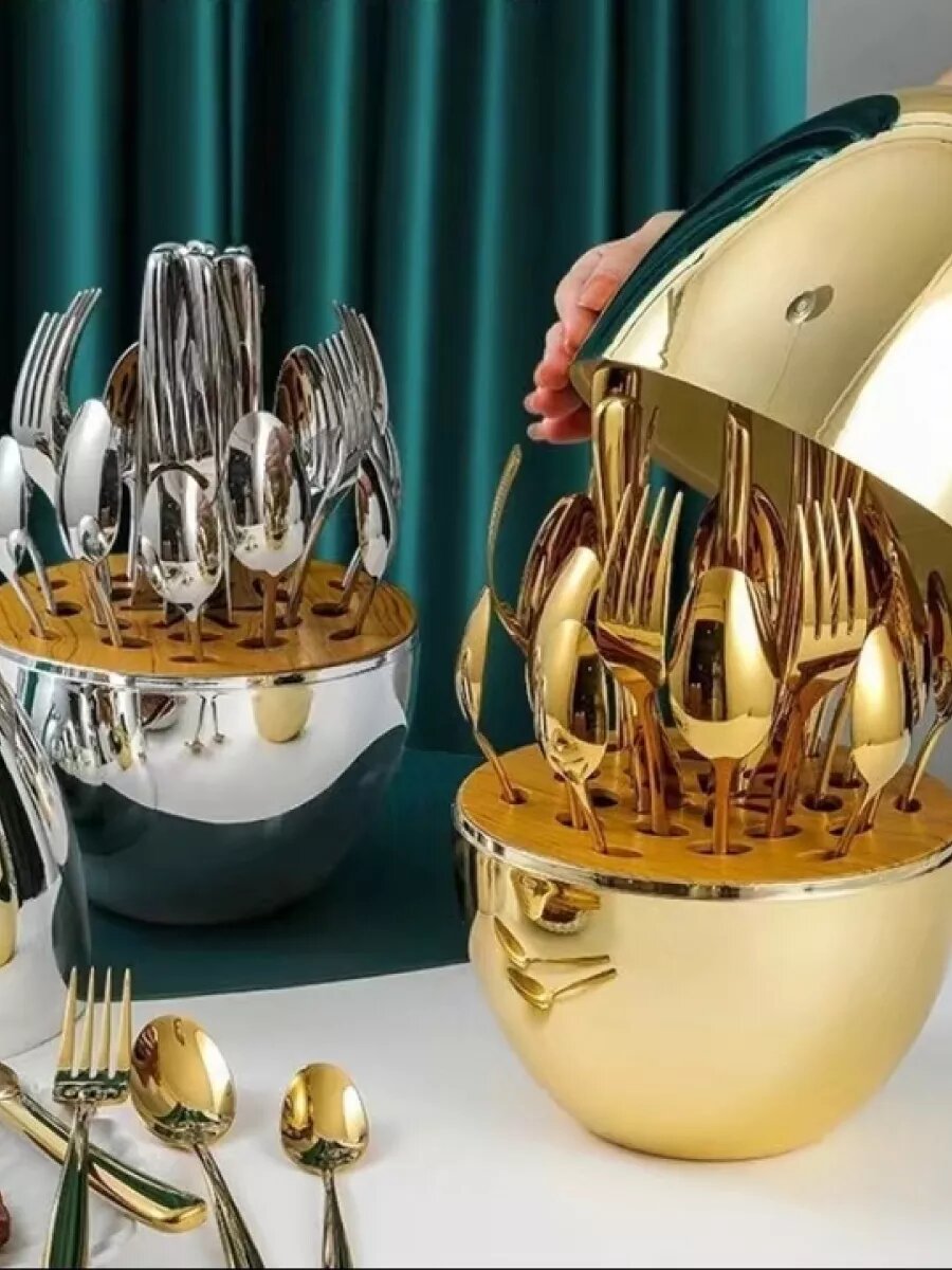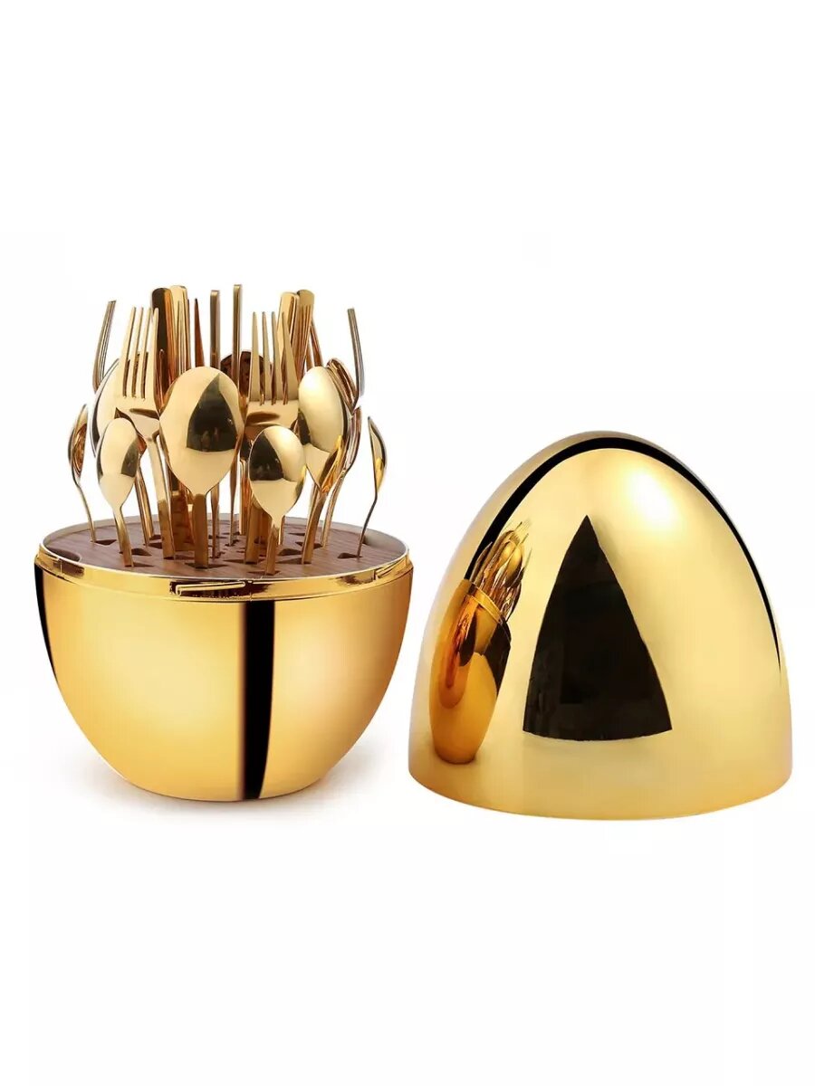 Предлагаем вашему вниманию уникальный подарочный набор столовых приборов который станет настоящей находкой для ценителей красоты и комфорта. Подставка для кухонных приборов в форме яйца - это элегантное и стильное решение для вашего дома, которое сочетает в себе необычный дизайн высокое качество и практичность. Особенностью этого кухонного набора принадлежностей является наличие подставки для столовых предметов, которая поможет вам сохранить порядок на столе. Набор включает в себя столовые вилки, столовые ножи, столовые ложки и чайные ложки, которые являются неотъемлемыми атрибутами любого стола. Их стильный дизайн идеально подходит для сервировки стола на любое мероприятие, будь то семейный ужин или праздничный обед. Выполненные из нержавеющей стали эти кухонные приборы обладают прочностью и долговечностью, что делает их надежными и удобными в использовании. Независимо от повода, этот подарочный набор столовых приборов доставит вам массу положительных эмоций и оставит незабываемые впечатления. Не упустите возможность порадовать себя или близкого человека этим оригинальным и стильным набором столовых приборов. Мы внимательно выслушали ваши пожелания и рады представить вам обновленную версию нашей подставки в форме яйца. Мы изготовили новый корпус из улучшенного ABS-пластика, который обеспечивает еще большую прочность и стабильность. Этот материал выдерживает повышенные нагрузки и меньше подвержен повреждениям, что делает подставку долговечной и надежной. Премиальный набор для кухни идеально впишется в любой интерьер, и будет радовать своей функциональностью долгое время. Будем рады видеть Вас в числе наших постоянных покупателей!
