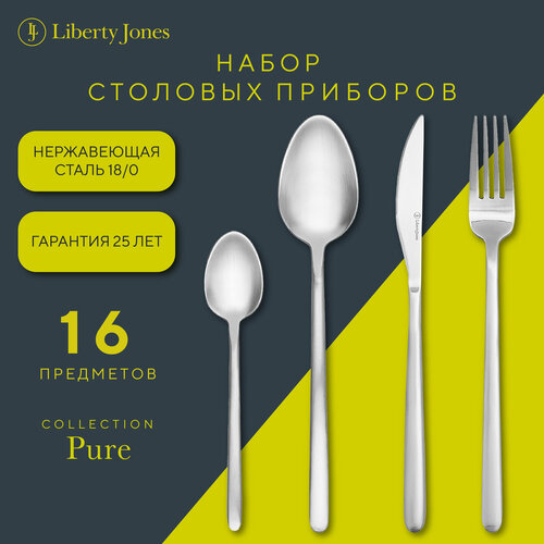 Набор столовых приборов Pure серебристый матовый на 4 персоны 16 предметов ложка вилка нож Liberty Jones LJ0000418: сравнение цен, характеристики, фото, актуальное наличие и цены.