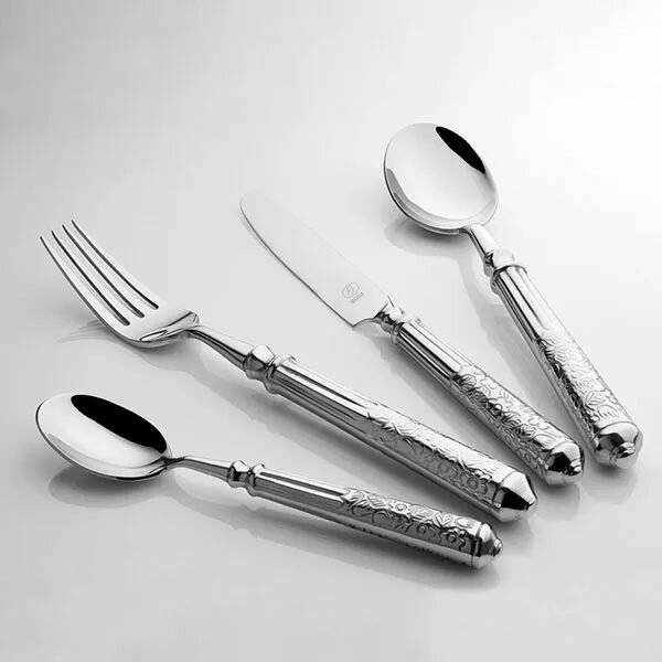 Столовая ложка - 6 шт; Столовая вилка - 6 шт; Столовый нож - 6 шт; Чайная ложка - 6 шт