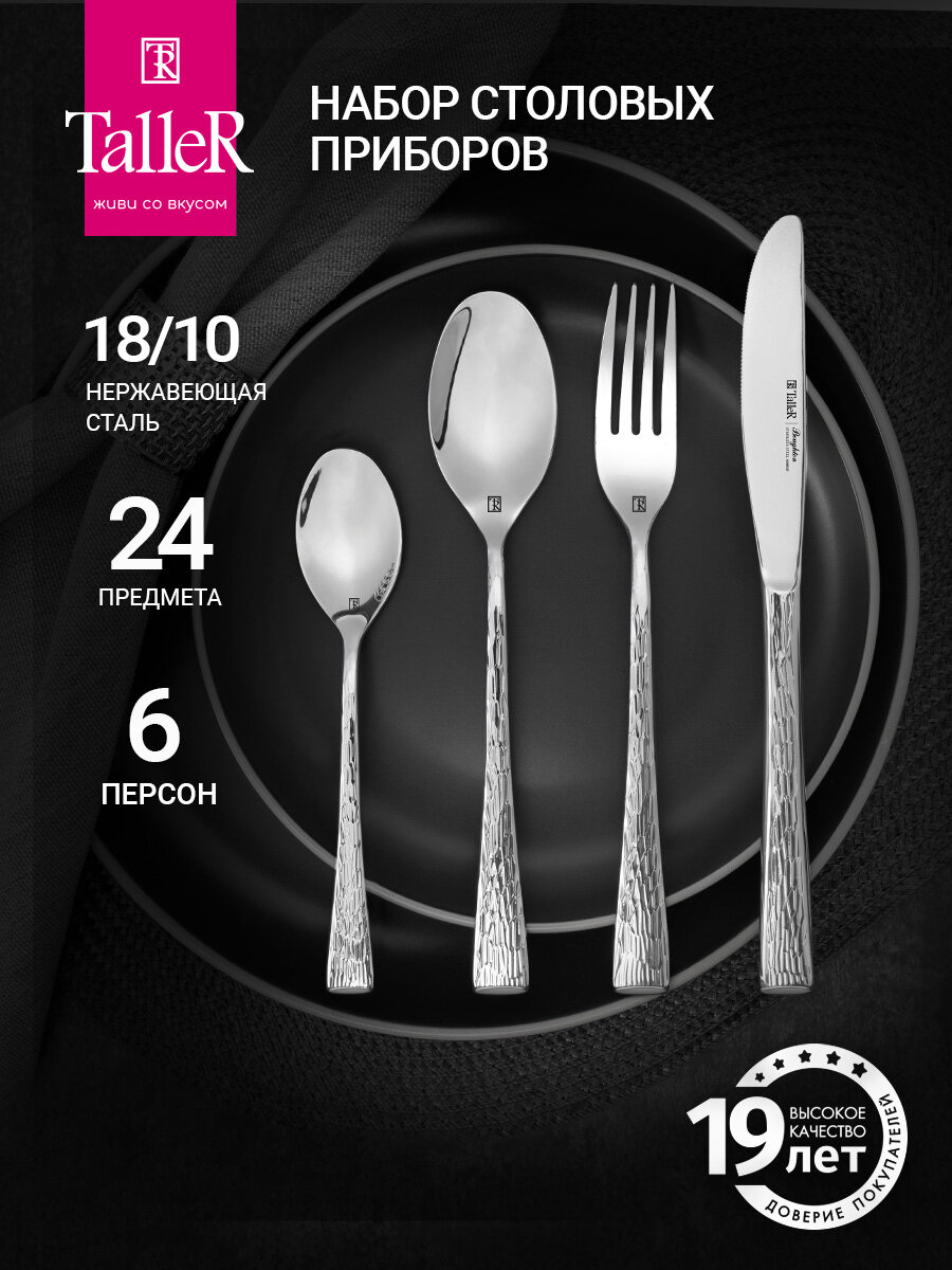 Купить Набор столовых приборов TalleR TR-21626 Боутон, 24 предмета в подарочной упаковке, нержавеющая сталь с доставкой по всей России.