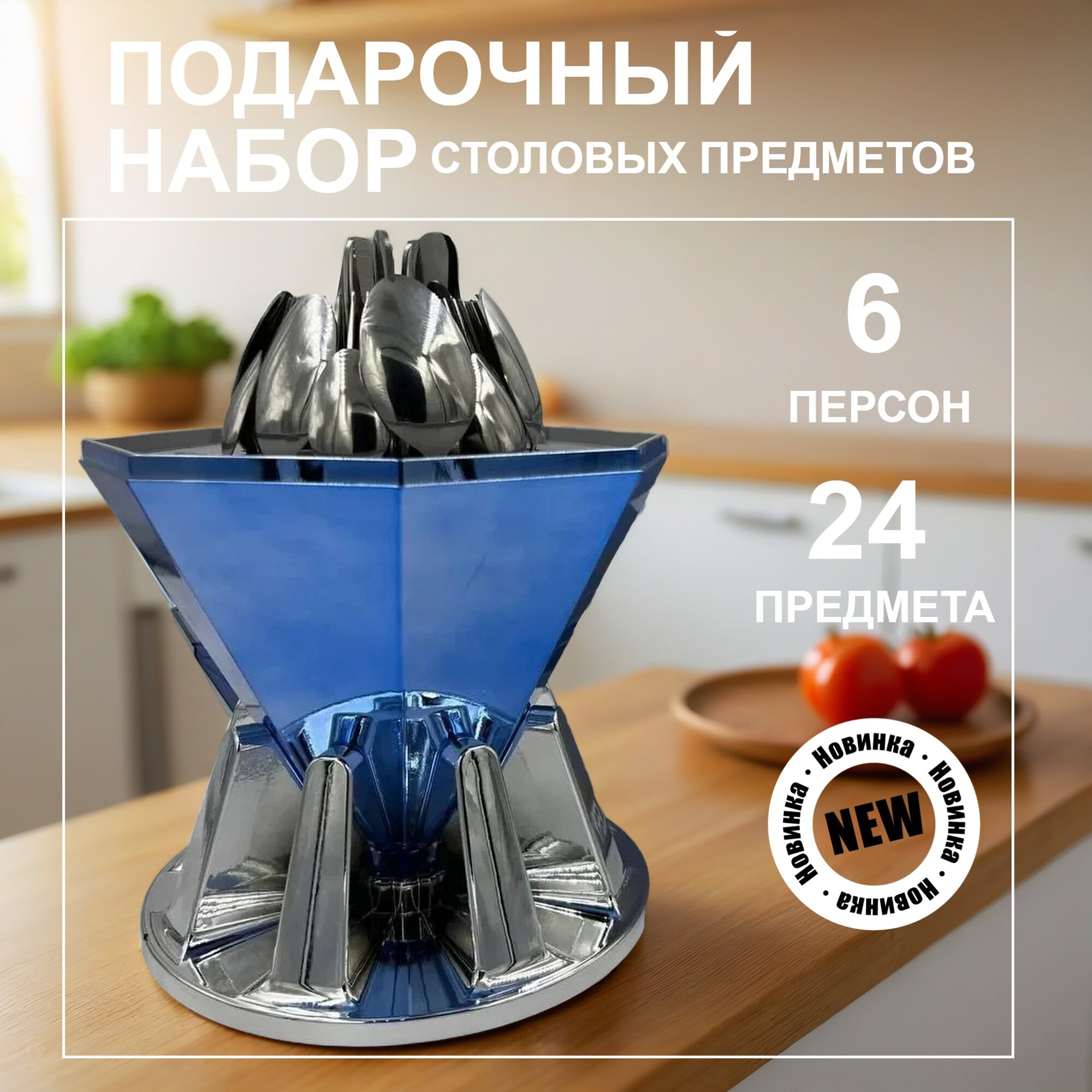 Купить Набор столовых приборов в подставке 24 предмета на 6 персон серебристый с доставкой по всей России. Набор столовых приборов в подставке 24 предмета на 6 персон серебристый: сравнение цен, характеристики, фото, актуальное наличие и цены.