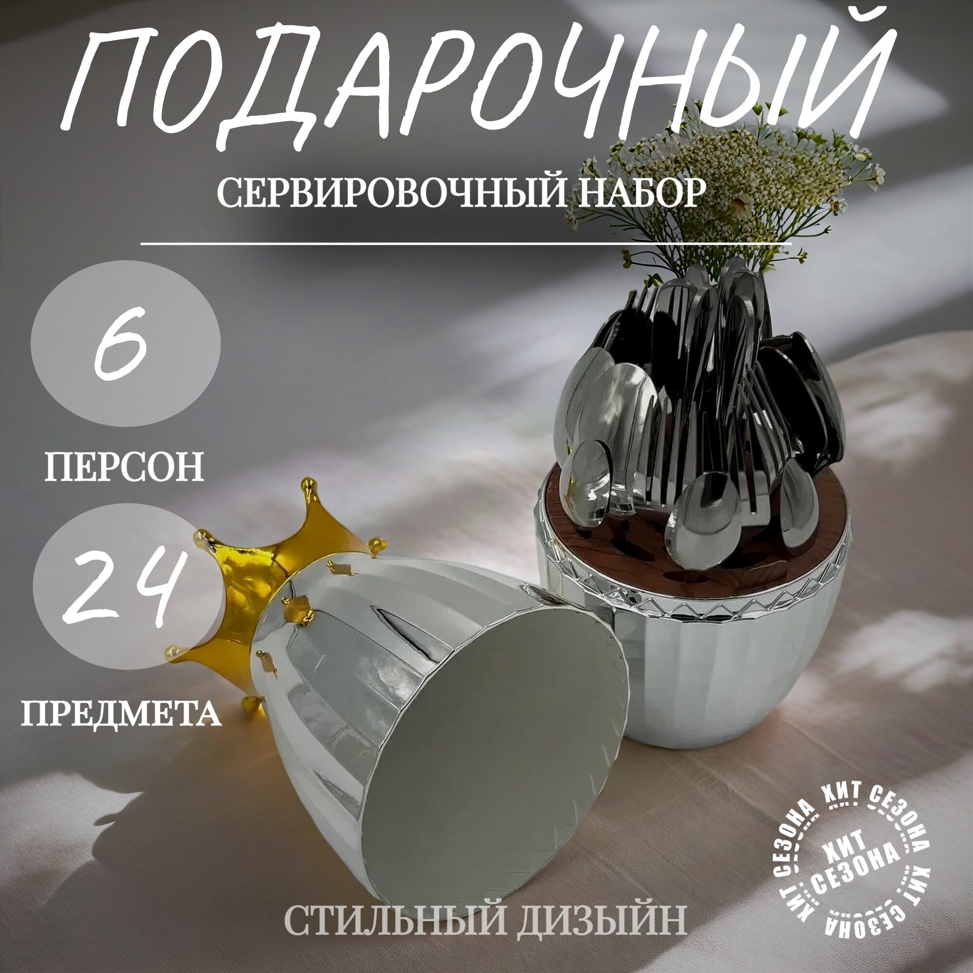 Купить Набор столовых приборов в подставке 24 предмета на 6 персон серебристый с доставкой по всей России. Набор столовых приборов в подставке 24 предмета на 6 персон серебристый: сравнение цен, характеристики, фото, актуальное наличие и цены.