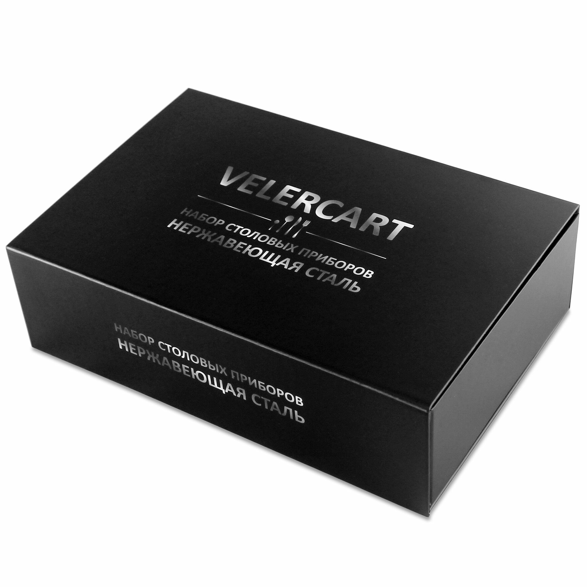 Набор из 24 столовых приборов VELERCART Premium в подарочной упаковке. Изготовлены из качественной нержавеющей стали AISI 430. Можно мыть в посудомоечной машине!