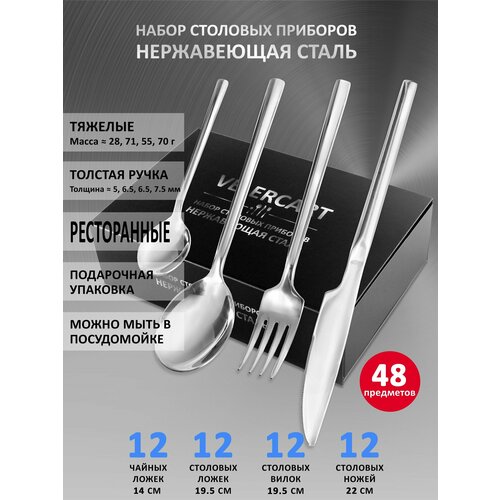 Набор из 48 столовых приборов VELERCART Sapporo. Изготовлены из качественной нержавеющей стали 410. Можно мыть в посудомоечной машине!