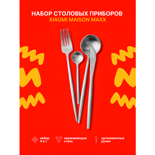 Купить Набор столовых приборов Xiaomi Maison Maxx Stainless Steel Modern Flatware Set Silver, 4 предмета с доставкой по всей России. Набор столовых приборов Xiaomi Maison Maxx Stainless Steel Modern Flatware Set Silver, 4 предмета: сравнение цен, характеристики, фото, актуальное наличие и цены.