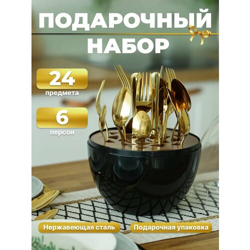 Набор столовых приборов золотистого цвета для 6 человек, подарочный набор из 24 предметов в черном футляре-яйце: сравнение цен, характеристики, фото, актуальное наличие и цены.