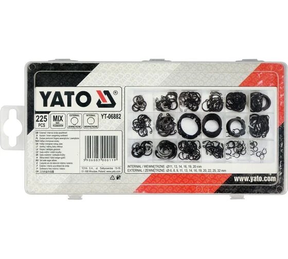Набор стопорных колец YATO 225 шт. YT-06882: сравнение цен, характеристики, фото, актуальное наличие и цены.