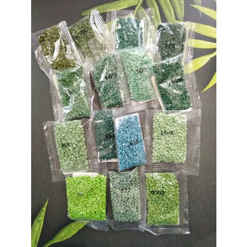 Цвет страз в реальности может немного отличаться от фото в силу разной цветопередачи экранов и условий съемки. Комплект страз для алмазной мозаики, творчества, рукоделия - d 2.5мм. В комплекте 15 цветов по 700-850 шт каждого цвета. Номера цветов страз в наборе (по таблице DMC): 730, 703, 501, 319, 470, 522, 368, 561, 163, 505, 563, 469, 518, 367, 164.