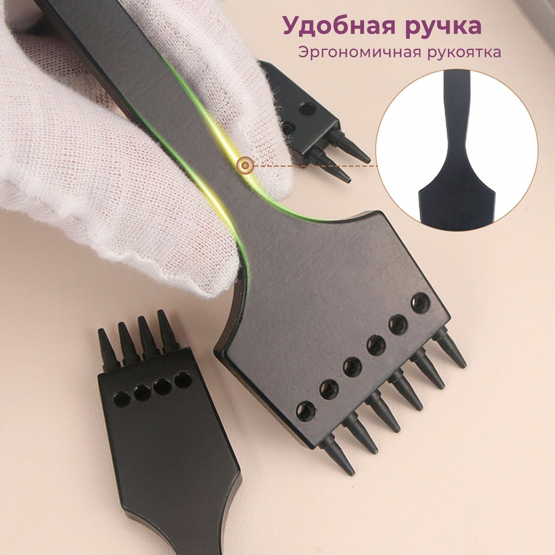 Пожалуйста помните, что пробойники из набора кожевника не предназначены для работы с металлическими молотками, а только с киянками из более мягких материалов (капролон, дерево и т. п.).