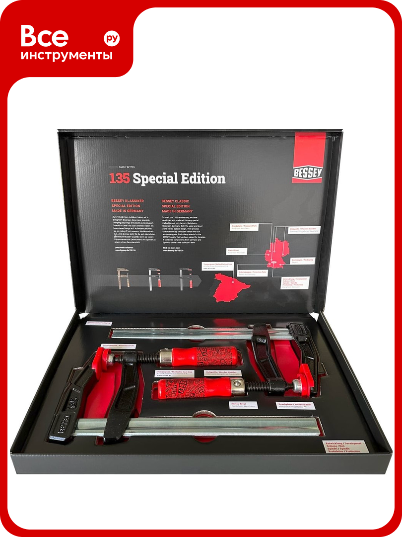 Набор струбцин TG25, 2 шт, "135 лет BESSEY", 250/120, 6 кН, деревянная ручка TGA25SET-135