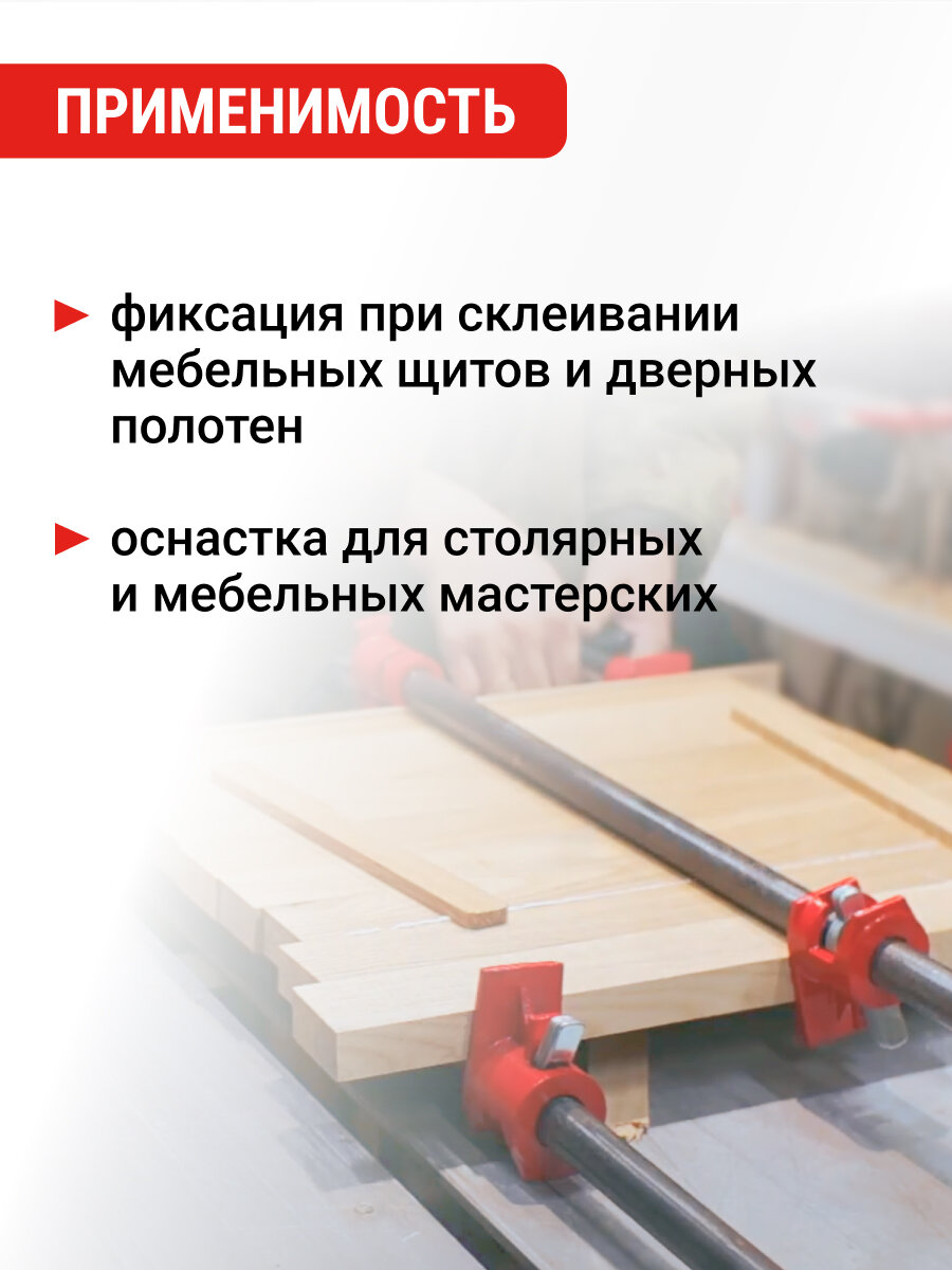 - Назначение: для зажатия и фиксации различных заготовок и деталей при склеивании и других слесарных работах, особую популярность трубные струбцины приобрели в столярных мастерских для склеивания мебельных щитов и дверных полотен