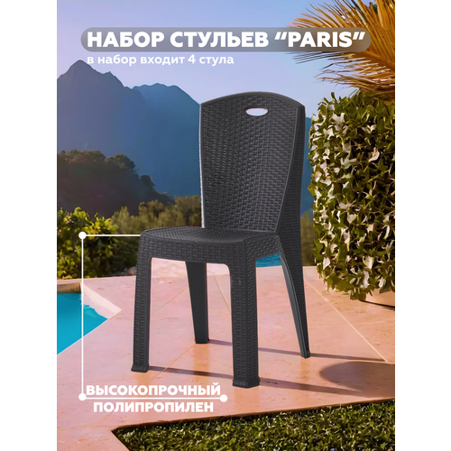 Набор стульев садовых Heniver PARIS, пластиковый, 36х38х88 см, 4 штуки, цвет антрацит: сравнение цен, характеристики, фото, актуальное наличие и цены.