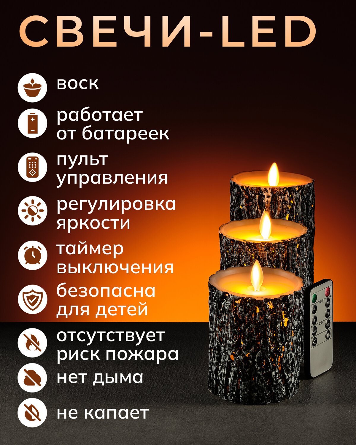 Набор свечей CandleQueen, декоративные, под дерево, светодиодные, на батарейках, 3шт: сравнение цен, характеристики, фото, актуальное наличие и цены.