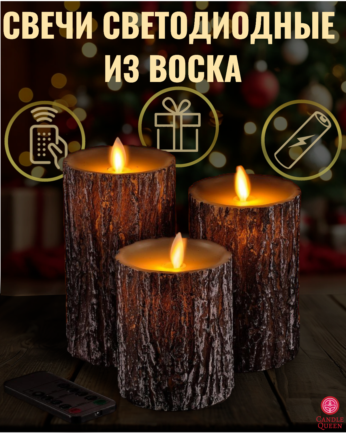 Купить Набор свечей CandleQueen, декоративные, под дерево, светодиодные, на батарейках, 3шт с доставкой по всей России.