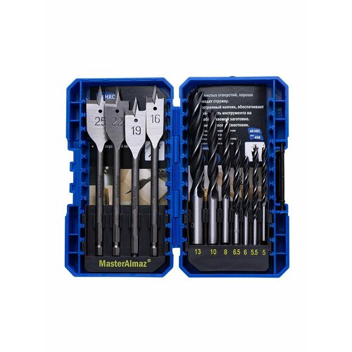 Набор сверл по дереву в кейсе 11 шт (перовые сверла 13,16,22,25мм и спиральные сверла 5, 5.5, 6, 6.5, 8, 10, 12мм). Универсальный набор сверл перовых и спиральных по дереву с шестигранным хвостовиком.