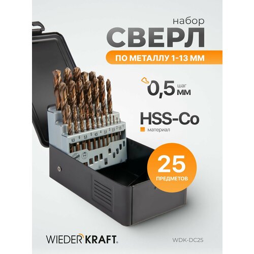 Сверла по металлу 25 шт: 1, 1.5, 2, 2.5, 3, 3.5, 4, 4.5, 5, 5.5, 6, 6.5, 7, 7.5, 8, 8.5, 9, 9.5, 10, 10.5, 11, 11.5, 12, 12.5, 13 мм.