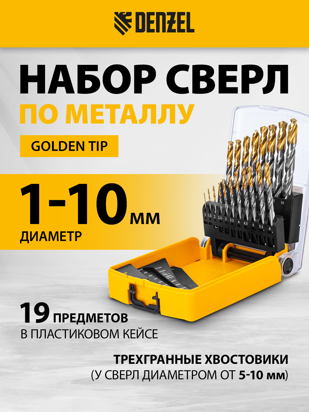 Набор Denzel Golden Tip 723003 состоит из 19 сверл по металлу диаметром 1-10 мм, изготовленных из стали P6M5. Угол заточки составляет 135°, что позволяет получать чистые и ровные отверстия в нержавеющей стали, чугуне, бронзе, алюминии, а также жестком пластике. Сверлам присвоен класс точности A1, что гарантирует высокое качество выполняемых работ. Оснастка характеризуется пониженным коэффициентом трения, что облегчает сверление и улучшает отвод стружки. Набор будет полезен дома и в мастерской.