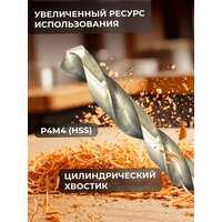 Сверла изготовлены из высококачественной быстрорежущей стали Р4М4 (HSS), что обеспечивает высокую прочность и долговечность. Полированное покрытие сверл улучшает их режущие свойства и продлевает срок службы.