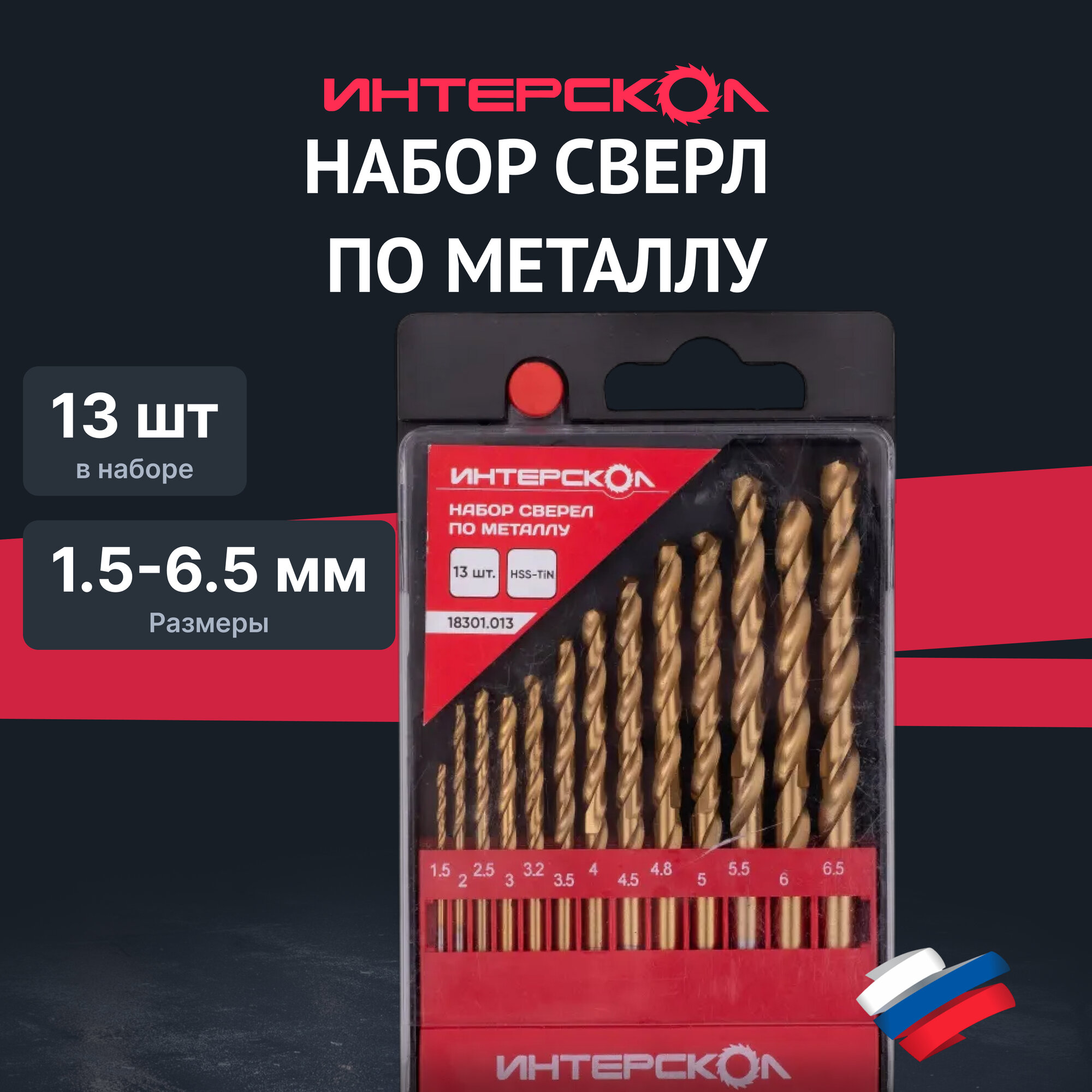 Купить Набор сверл по металлу ИНТЕРСКОЛ, HSS-TiN, 1.5-6.5 мм, 13 шт, 18301.013 с доставкой по всей России. Набор сверл по металлу ИНТЕРСКОЛ, HSS-TiN, 1.5-6.5 мм, 13 шт, 18301.013: сравнение цен, характеристики, фото, актуальное наличие и цены.