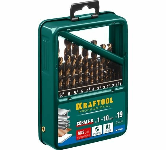 Набор сверл Kraftool по металлу 19 шт, 1-10 мм, HSS-Co 29656-H19: сравнение цен, характеристики, фото, актуальное наличие и цены.