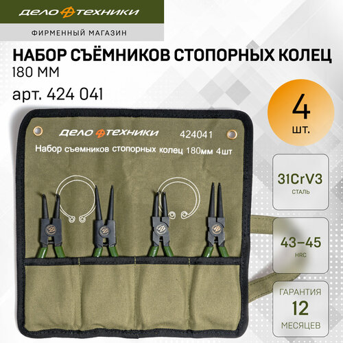 Набор съёмников стопорных колец 180 мм, 4 штуки, Дело Техники, 424041: сравнение цен, характеристики, фото, актуальное наличие и цены.