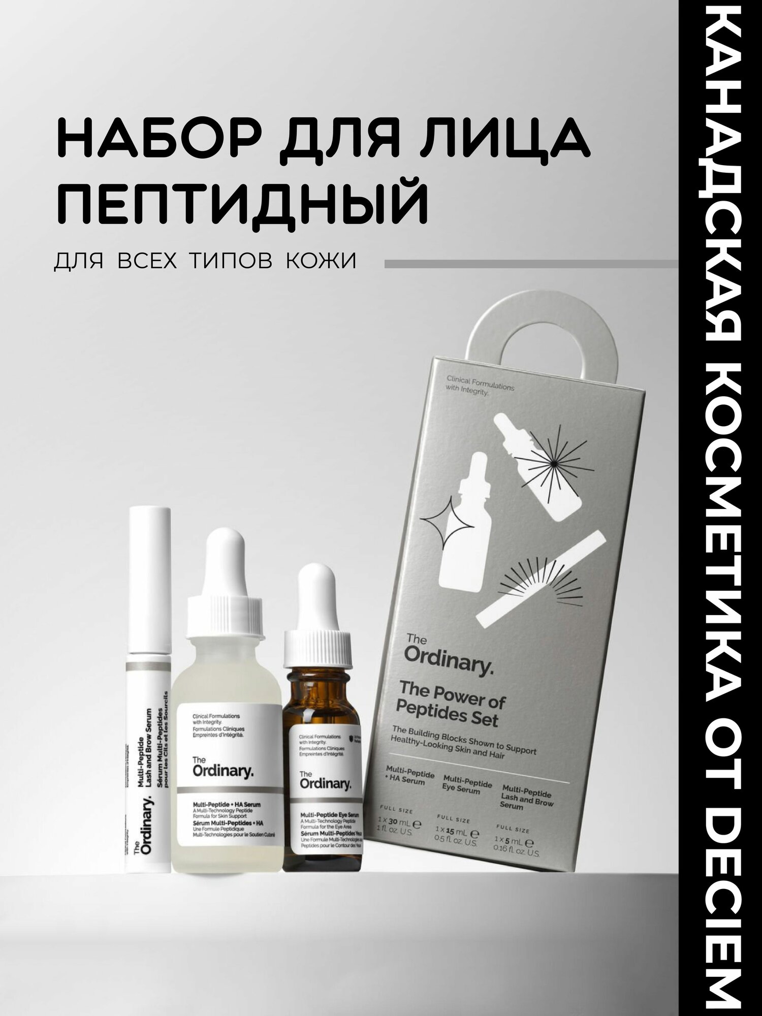 Набор уходовой косметики для лица с пептидами The Power of Peptides Set от The Ordinary предложит вам все необходимое для достижения здоровой и сияющей кожи. Этот комплексный набор включает в себя несколько высокоэффективных продуктов, которые обеспечивают глубокое увлажнение и питательные вещества, необходимыми для поддержания упругости и эластичности кожи.